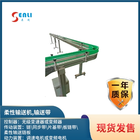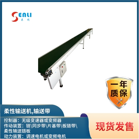 根据不同的结构特征,输送机可分为带柔性牵引件的输送机和不带柔性牵引件的输送机。柔性构件输送机的工作特点是通过牵引构件的连续运动将物料或货物沿一定方向输送。牵引构件是一个往复循环的封闭系统,通常一部分运送货物,另一部分牵引构件返回,常见带式运输机,板条链式输送机斗式提升机、垂直提升输送机等。无柔性构件输送机的工作特点是利用工作构件的旋转运动或振动,使货物向某一方向输送,其输送构件不具有往复循环的形式,常见的气动输送机有气动输送机、螺旋输送机、振动输送机等。